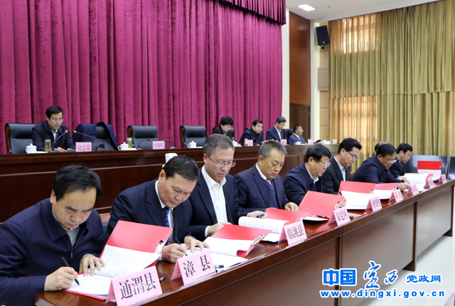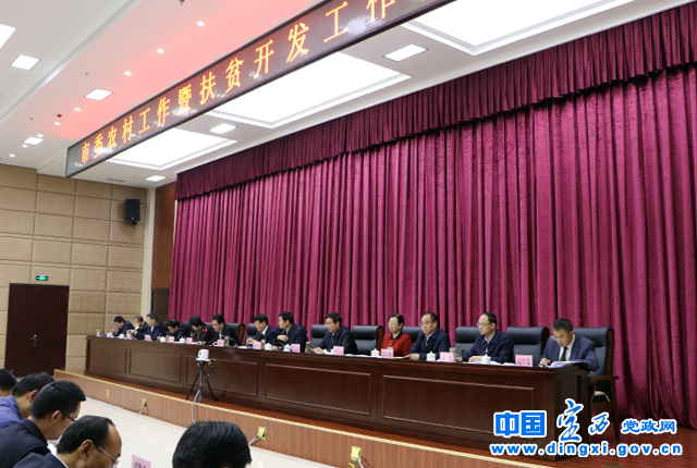 会议书面传达了省委农村工作暨扶贫开发工作会议精神;征求了各县区、市直各部门对《中共定西市委、定西市人民政府关于实施乡村振兴战略的安排意见》的意见。市委、市政府与市级责任领导、各县区党委、政府和市直有关部门主要负责同志分别签订了《定西市2018年度脱贫攻坚责任书》和《定西市2018年度美丽乡村建设责任书》。市扶贫办、市农业局、漳县县委、甘肃天士力中天药业有限责任公司和安定区2017年脱贫户代表分别作了交流发言。