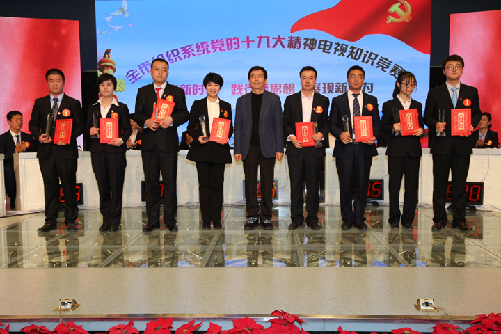 3月15日下午,市委组织部在市广播电视台演播大厅举办了以“聚焦新时代,践行新思想,展现新作为”为主题,以“学懂、弄通、做实”为总要求的全市组织系统学习党的十九大精神电视知识竞赛。全市组织系统的8支代表队24名选手参加竞赛。市委常委、市委组织部部长寇明春出席活动并分别为获奖集体和个人颁奖。市县区组工干部代表,市直各党(工)委党务干部代表130余人现场观看了比赛。