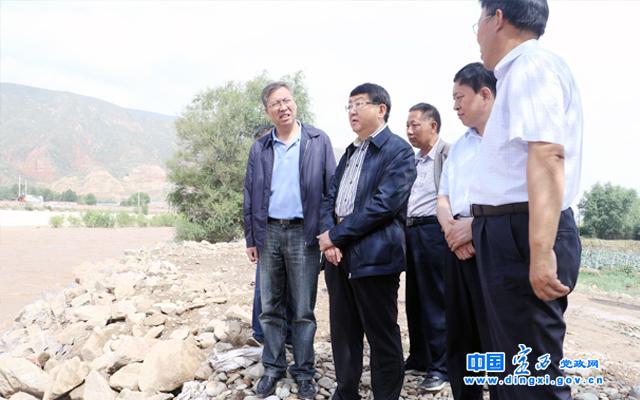 唐晓明在临洮县查看河道、河堤受损情况,检查指导抢险救灾工作。