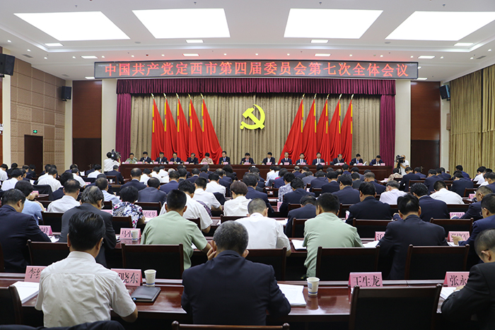 7月25日,中国共产党定西市第四届委员会第七次全体会议举行。会议传达学习了习近平总书记在全国组织工作会议上的重要讲话精神和关于打好三大攻坚战、实施乡村振兴战略、深化地方机构改革的重要论述,学习贯彻了省委十三届五次全会精神,总结了上半年工作,安排部署了下半年及今后一个时期的重点工作,讨论了《定西市乡村振兴战略实施规划(2018—2022年)》《中共定西市委定西市人民政府关于打赢脱贫攻坚战三年行动的实施意见》,审议通过了《中国共产党定西市第四届委员会第七次全体会议决议》。